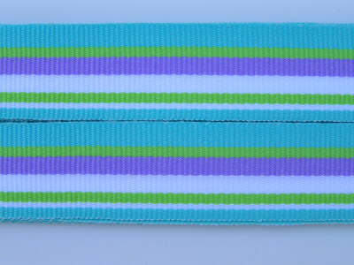 Beautiful polyester crossgrain ribbon in turquoise, lime green, purple and white. Approximately 2 yards. 5/8ths of an inch wide.