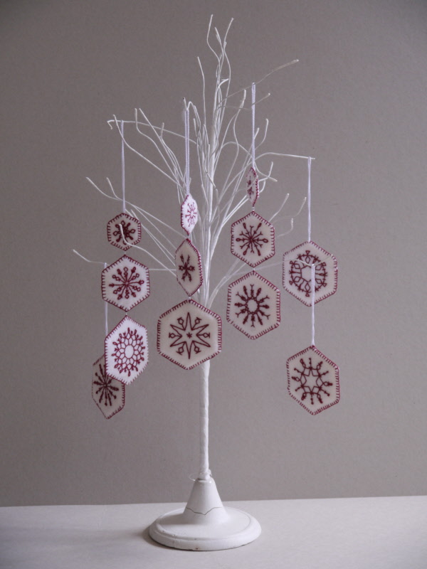 These lovely Christmas decorations have been designed by Sue Rhodes and are easy to make. Inspired by real snowflakes, this hand sewn project is suitable for all abilities and includes twelve different designs. They measure 3, 2 and 1 1/2 inches. KIT AVAILABLE.