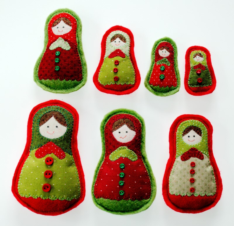 Inspired by a recent trip to Moscow, these super little Russian Dolls designed by Sue Trangmar are great fun and easy to make. There are seven in the set and they range in size from 4 inches down to 2 inches. The pattern includes full instructions and templates to make all seven.