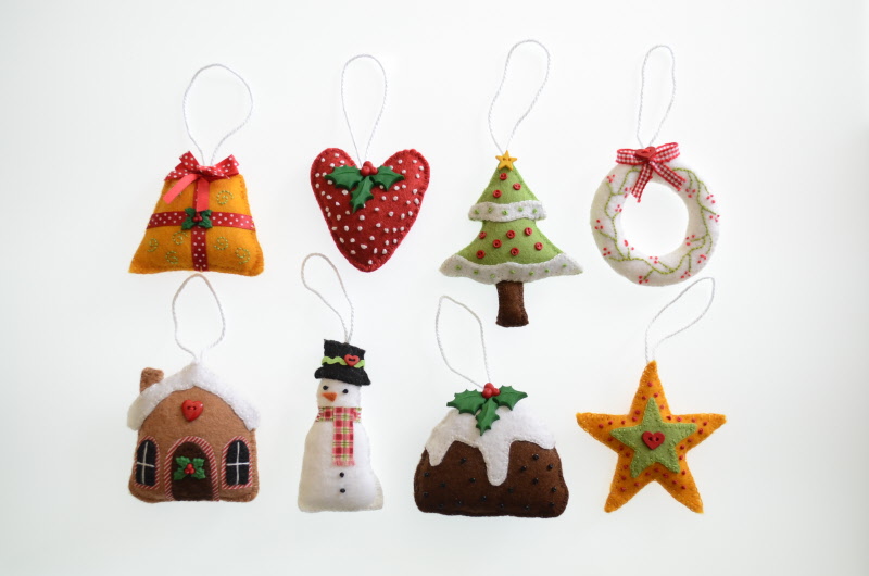 These beautiful Christmas decorations have been designed as a hand sewn project. Made from felt, you get all eight designs in the one pattern. They measure approximately 3 inches high and a felt starter kit is also available.