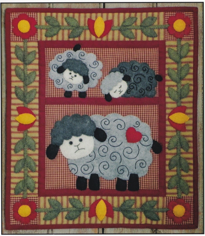 Lambs in the field always herald the arrival of Spring and this little wallhanging depicts mummy sheep with her two little lambs near her. The applique is all done in felt which makes it easy and suitable for a beginner. Rachel Pellman has designed them and writes excellent and easy to follow instructions. The wallhanging measures approximately 13 x 15 inches.
