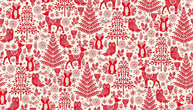 Scandi Christmas Forest Animals Red