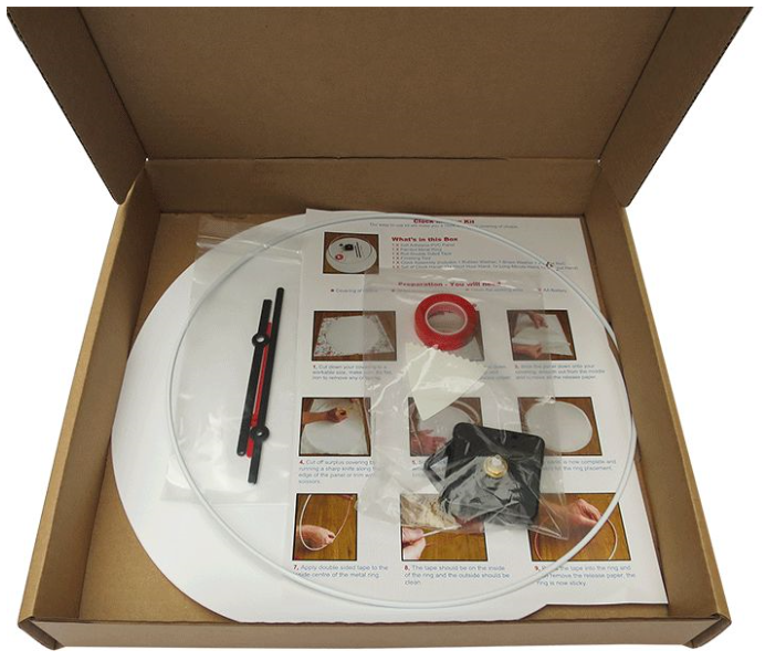 Easy to use, laminate your own covering to the self-adhesive clock face panel and follow the comprehensive step by step instructions.