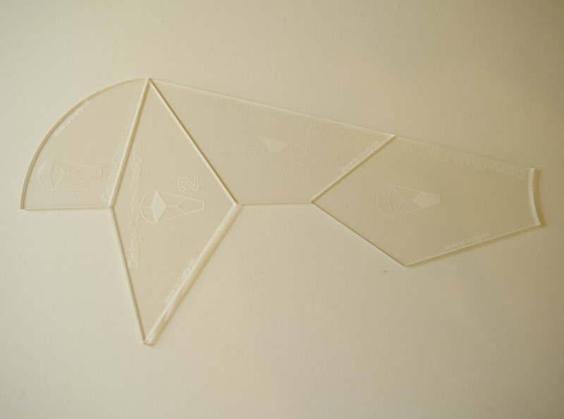 We are very pleased to have designed a simple but effective template set for use in making the large Dresden plate design. This will ensure accurate shapes and the perfect size to fussy cut the pieces together perfectly as the templates are clear. Finished blade size of each Dresden is approximately 18 inches.