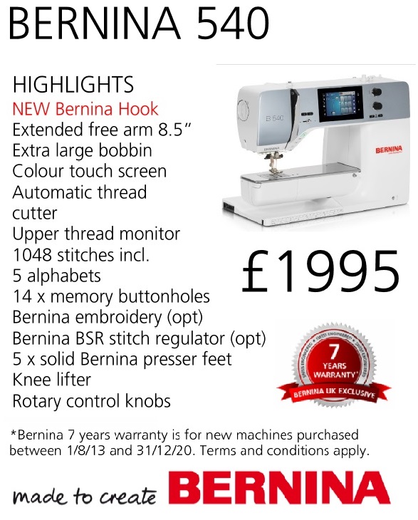 *Bernina 7 years warranty is for new machines purchased between 1/8/13 and 31/12/20. Terms and conditions apply.