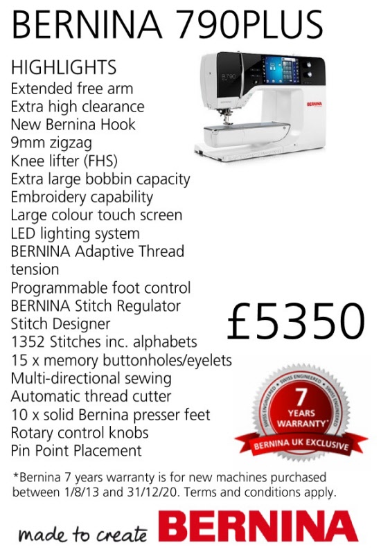 *Bernina 7 years warranty is for new machines purchased between 1/8/13 and 31/12/20. Terms and conditions apply.