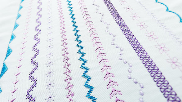A wide variety of beautiful 7mm stitches, including utility stitches, buttonholes, decorative stitches, quilt stitches, cross stitches and hemstitches.