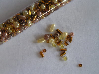 Gorgeous long candy tubes filled with loveliness!!! Who can resist beads - we think that they make great ornaments if you can't bear to open them!!! This selection has a variety of seed beads of various sizes in creaMm and browns. Approximately 20 grams in weight.